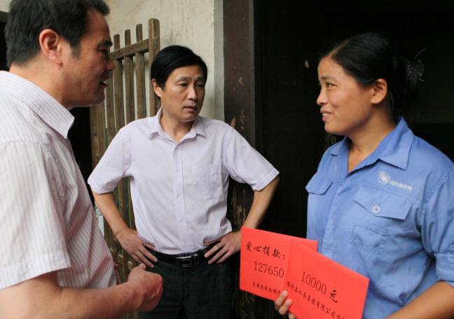 8月1日上午,集團倪阿泉、單寶子、高小林等領導在供水公司領導的陪同下專程前往錢清看望慰問了供水公司柯西分公司家庭受災職工莫煜君,為她送去了集團干部職工的愛心款127650元及集團公司的資助款10000元,表達集團及干部職工的關愛之情。莫煜君連聲道:“謝謝集團公司,謝謝領導關心……”感激之情溢于言表。