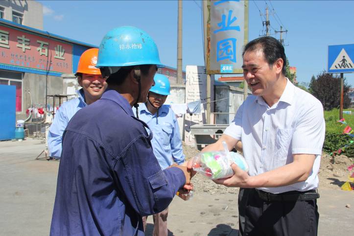 倪董事長與職工一一握手,向他們付出的辛勤勞動表示衷心感謝,并囑咐現場管理人員要切實落實好高溫天氣的防范措施,科學安排工作時間,做好防暑降溫工作,確保員工身心健康。